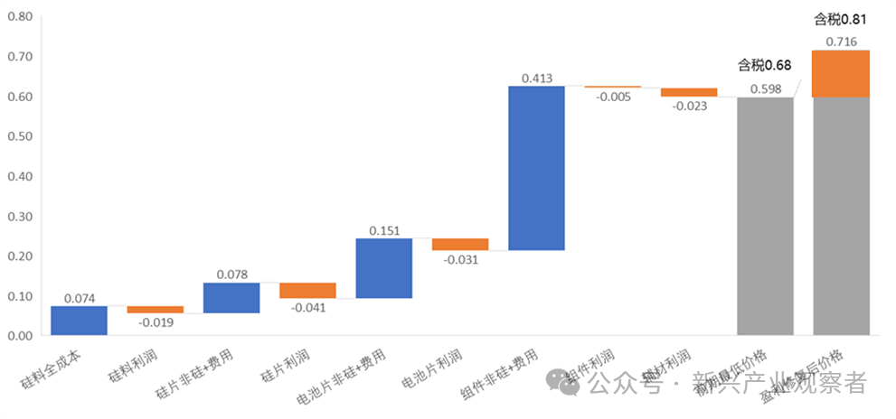 图表:测算主要环节覆盖全成本后对应组件含税价约0.81元/W